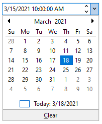 By default, DateEdit comes with a Today button and Clear button functionality. The Today button shows the current date to the end-user, while the Clear button clears the value in the DateEdit editor. The control lets you show or hide Today and Clear buttons in the calendar dropdown of DateEdit using the ShowToday and ShowClearButton properties.