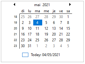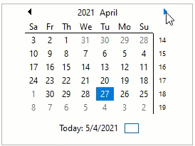 Right-to-left support: CalendarView supports Right-to-Left functionality for languages that follow Right-to-Left scripts. The control enables you to display calendar in the Right-to-Left direction by using the RightToLeftLayout and the RightToLeft properties. When both RightToLeftLayout and RightToLeft properties are true and Yes respectively, the calendar appears in the Right-to-Left direction.