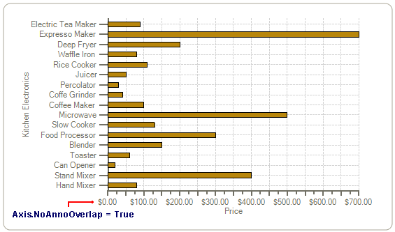 In cases when you don’t have enough room on the axes to display your annotation you can set the NoAnnoOverlap property to True so it will suppress the drawing of any axis annotation that would overlap a previously drawn annotation regardless of the reason for the overlap.