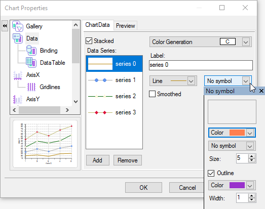 To add a symbol to a data series using the Chart Properties designer, complete the following steps: