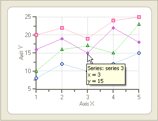 When you hover over the points in the data series on the chart area at run time, the tooltips appear for each point, like the following: