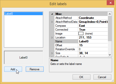 Select the Add button in the Edit labels editor to add a new label. Repeat this to add more labels. If you would like to remove a label, select the label you would like to remove and click on the Remove button.