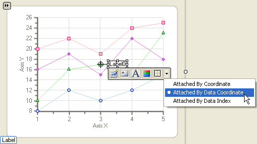 Select an existing Chart label and select the Attached By Data Coordinate item from its drop-down menu.