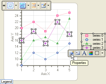 To modify the appearance of the chart Legend using the Properties button in the Legend's floating toolbar, complete the following steps:
