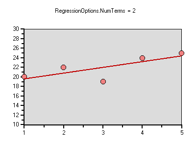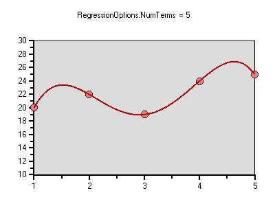 The RegressionOption object allows specification of the regression model. The NumTerms property defines the number of coefficients to be used by a regression, and is relevant only for regressions with variable number of terms (polynomial and Fourier).