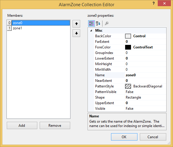 PatternVisible | Gets or sets whether the specified PatternStyle should be used to brush the background of the AlarmZone |