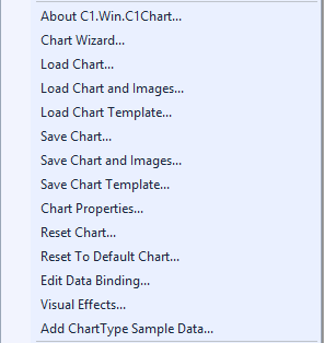 The C1Chart2D control provides a context menu for additional functionality to use at design time.