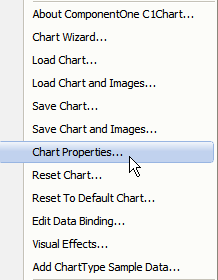 The Chart Properties designer can be accessed at design time by right-clicking on the C1Chart control and selecting Chart Properties from its context menu: