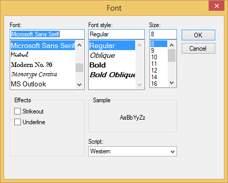 The Font command button exposes the Font dialog box for the AxisX and AxisY elements. Here the Font style can be modified for the Axes' text.
