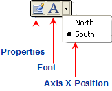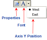 The Position command button has a drop-down list box which includes a list of different compass directions (West, East, North, or South) for the user to choose from. The AxisY compass directions will position the AxisY to the West position which is to the left of the Chart or to the East position which is to the right of the Chart. The AxisX compass directions will position the AxisX to the South which is below the chart or to the North which is above the chart. The default compass position for the AxisY is West and the default position for the AxisX is South.