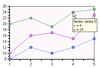 Provides a set of conversion methods that when used in conjunction with .NET's MouseMove event allow the programmer to keep track of the chart's region, series, or data point under the mouse pointer. This makes it easier to create interesting application specific features like handling a double-click in the legend, or chart tool tips.