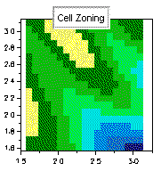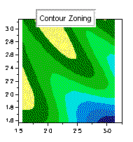 Use the ZoneMethod property of the Chart3DContour object to specify how to determine each zone region. Contour zoning uses the contour intervals for each zone region, while cell zoning uses the rectangular block formed by the X/Y grid. Cell zoning produces a coarser-looking surface but redraws significantly faster than contour zoning. ZoneMethod can be accessed at design time through the Contour node, which is located in the ChartGroup Collection Editor in the Visual Studio Properties window.