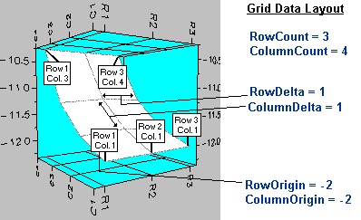 - The number of rows and columns, the origins, and the single row and column delta value defines the X/Y grid.