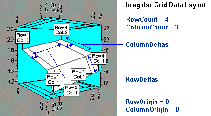 Use Irregular Grid layout when the X-coordinates of each point or the Y-coordinates of each point are not the same distance apart. The following diagram illustrates the characteristics of Irregular Grid layout: