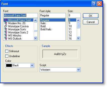 The Font command button exposes the Font dialog box for the Header and Footer element. Here the Font style can be modified for the Header and Footer's text.