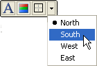 The Compass command button has a drop-down list box which includes a list of different compass directions (North, South, West, and East) for the user to choose from. The directions will position the Header or Footer in the North position which is above the Chart, the South position which is below the Chart, the West position which is to the left of the Chart, and the East position which is to the right of the Chart. The default compass position for the Header is north and the default position for the Footer is south.