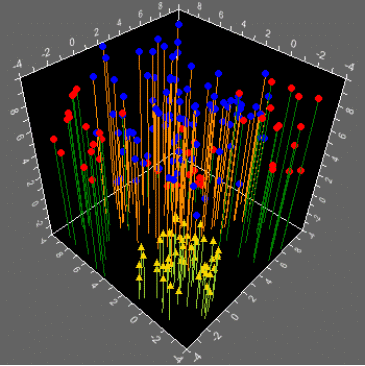Use the Chart3DElevation object's DropLines property to specify whether or not drop lines appear between the plotted points and the origin. Each point in a scatter plot has a drop line that connects it to the Z = Zmin plane. The DropLines property can be accessed at design time under the Elevation node of Chart3DGroup Collection Editor.