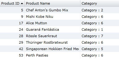 Finally, click the column headers to sort the grid by Category or Supplier and notice that the sorting is performed based on the value displayed on the grid. This is what anyone would expect, but surprisingly it is not easy to achieve using regular data binding.