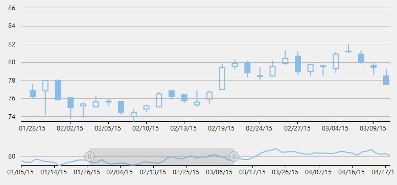 FinancialChart's RangeSelector lets a user select a specific range of data to be displayed on the chart. A user can easily bind the RangeSelector with various types of financial charts. It is mostly used by finance industry to perform stock analysis on different data ranges.