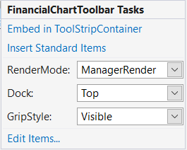 You can click the FinancialChartToolbar's smart tag to open the FinancialChartToolbar Tasks smart tag panel which is shown in the following image.