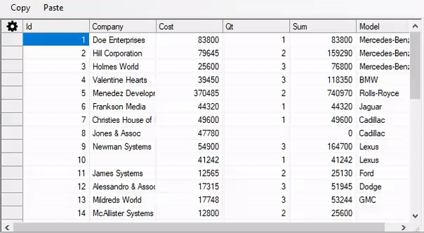 FlexGrid provides Cut, Copy, and Paste methods in the C1FlexGrid class which can be used to implement clipboard operations on the entire grid or a selected part of the grid. This enables you to quickly copy or cut the required data and paste the copied content onto the current selection.