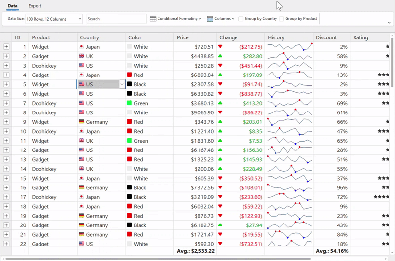 FlexGrid provides several options to flexibly customize the filtering UI, and lets you create your own unique filter for your application. The control allows you to show, hide and customize the filtering icon. You can even change the language displaying in filter to meet your localization requirements.