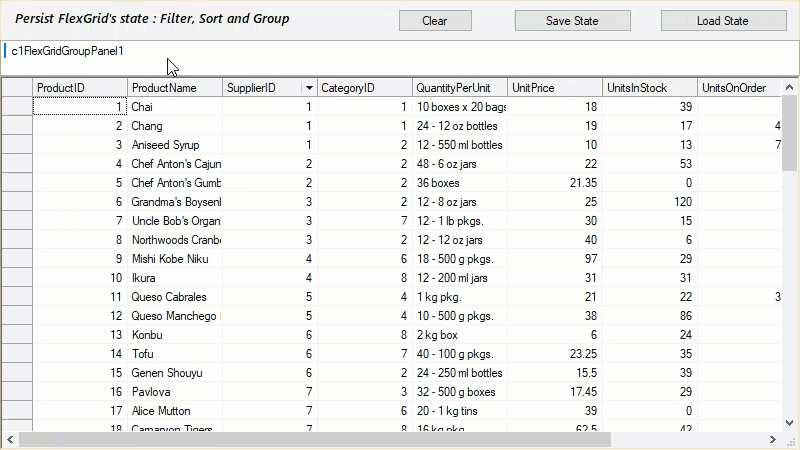 There are two steps to implement persistence of the grid state. First, we have to serialize the grid state and then we restore it. In this topic, we discuss how to persist the filtered, sorted and grouped state of the FlexGrid control.