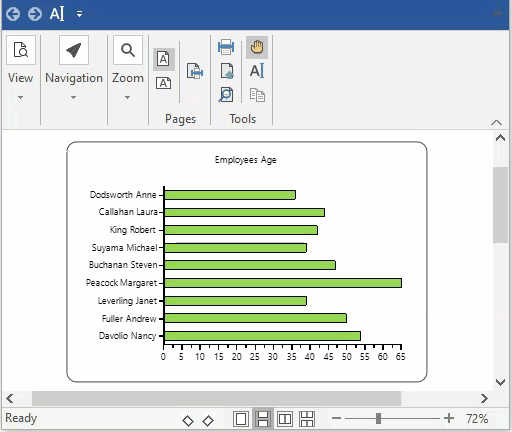Let's say your report has two data sources, 'Employees' and 'Products'. You want to create two charts, one that displays FullName and Age from Employees data source, and other that displays CategoryName and Sum(UnitsInStock) from Products data source.