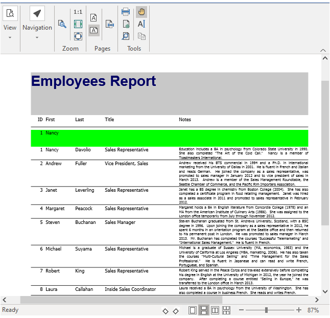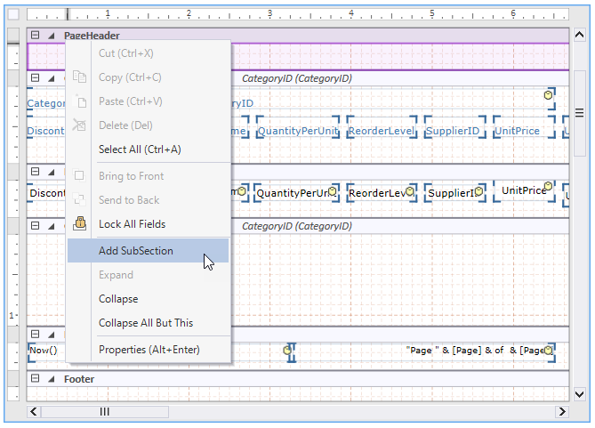 For instance, let's say you want to add a sub-section in the Page Header. This can be easily achieved via the FlexReportDesigner in few steps as described below: