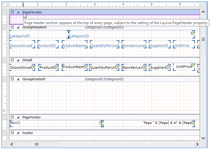You can also add a sub-section in the Page Header section of a report programmatically. To illustrate the addition of a sub-section to an existing section like Page Header, we will be using the QuickStart sample used to create a report definition.