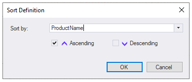 Select ProductName, check the Ascending checkbox, and click OK.