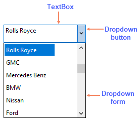 The DropDownControl consists of three parts: TextBox, DropDown Button and DropDownForm.