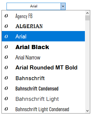 When you click the dropdown button of the FontPicker control, it's interface looks similar to the following image:
