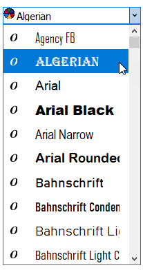 The snapshot below depicts a FontPicker control with the ItemFontSize set as 15.