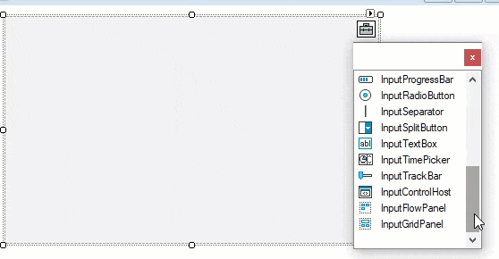 So, you can add components to the InputPanel at design time using the glyph feature. You can drag and drop grid panel within the flow panel, and vice-versa. Learn more about this feature in the Design-Time support.