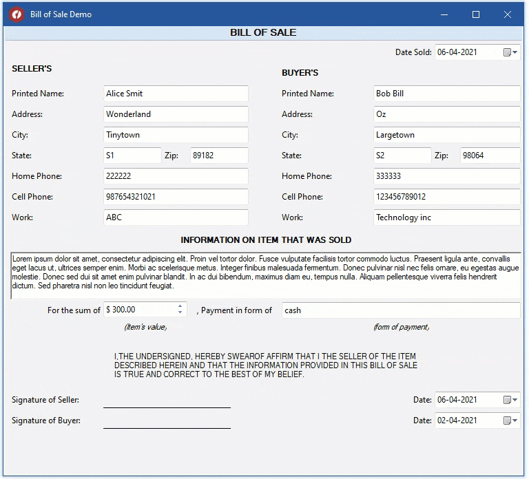 The below gif shows a sales bill created by using an InputGridPanel inside an InputPanel control. The form items like labels and textbox are added in the grid and as can be seen, the resize action does not distorts the form layout.