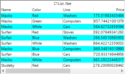 List allows you to style the control by creating alternate rows. To achieve this, you can set the AlternatingRows property of the C1List class to true.