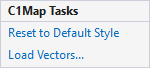 The Map control provides quick and easy access to some common properties through its smart tag. To access the C1Map Tasks smart tag panel, click the smart tag icon () in the upper right corner of the map. This opens the C1Map Tasks smart tag panel as shown in the following image.