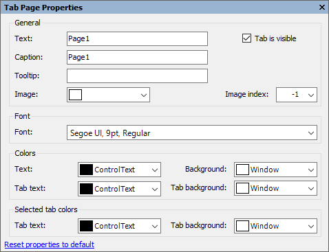 Tooltip | The ToolTip text textbox sets the ToolTip text for the tab page. |