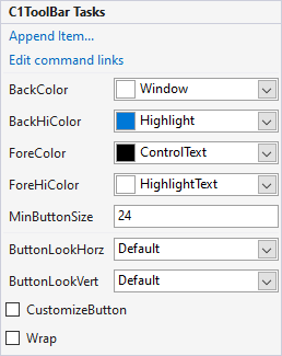 The C1ToolBar component provides quick and easy access to its most common properties.