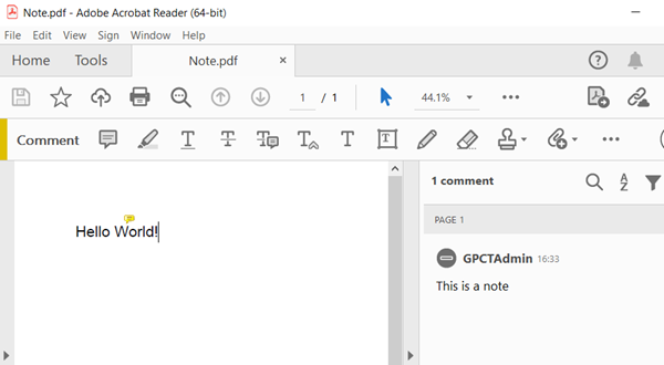 You can add notes for yourself to record feedback, make comments or flag any edits in a Pdf document. PDF for .NET allows you to add a note and display a small note icon wherever a note is added in the document using the AddNote method.