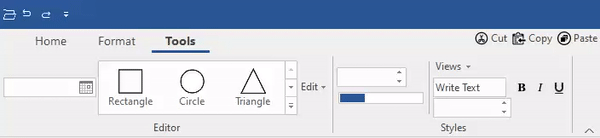 Note that all the elements of the ribbon can not be shown in the drop-down part of the simplified view. For example, the user can specify not to show a button element in the dropdown using the ShowInMore property of RibbonButton class.