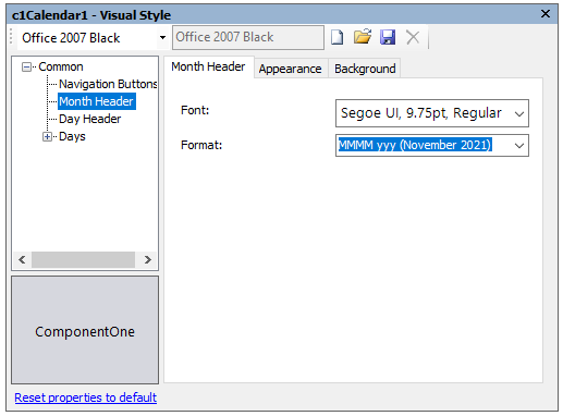 Through the Month Header node of the Visual Style dialog box, you can set properties for the month header.