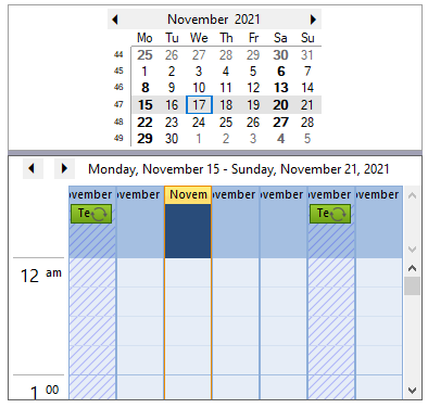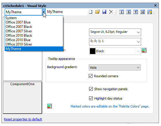 The C1Schedule and the C1Calendar controls support Visual Styles. In addition to Visual Styles, Scheduler for WinForms also supports C1ThemeController so you can choose from many predefined themes using Themes for WinForms.