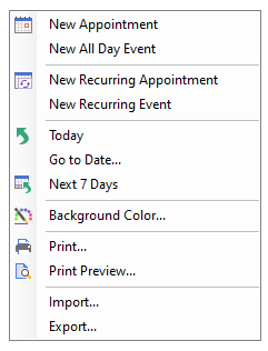 If you are in the DayView or WorkWeekView views, the following menu will appear when you right-click within the C1Schedule control: