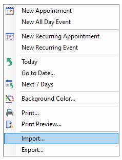 At run time you can import and export your appointment data using the context menu: