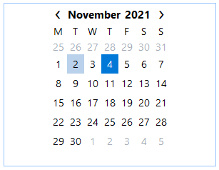 By default week numbers appear on the C1Calendar control to the left of the calendar dates.