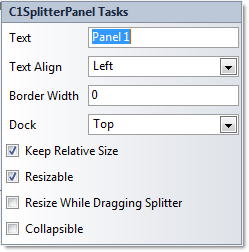 Indicates whether or not the C1SplitterPanel can be collapsed. Check this checkbox to make the C1SplitterPanel collapsible. By default the panel is not collapsible.