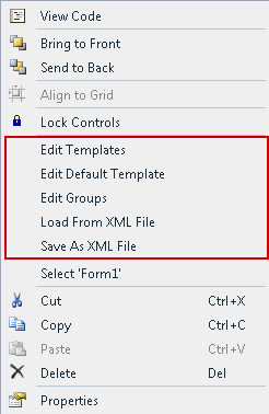 The C1TileControl control provides a context menu for additional functionality to use at design time.