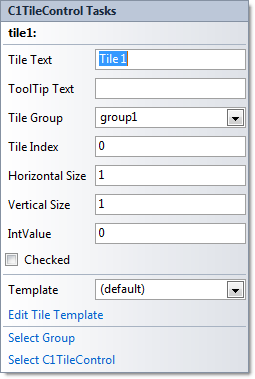 To access the C1TileControl Tasks menu, click any of the tiles in the C1TileControl control. This will open the C1TileControl Tasks menu.
